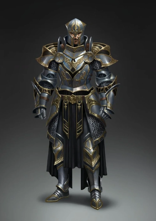 Je to muž středního věku, do boje jezdí ve svém stříbrem zdobeném plátovém brnění.